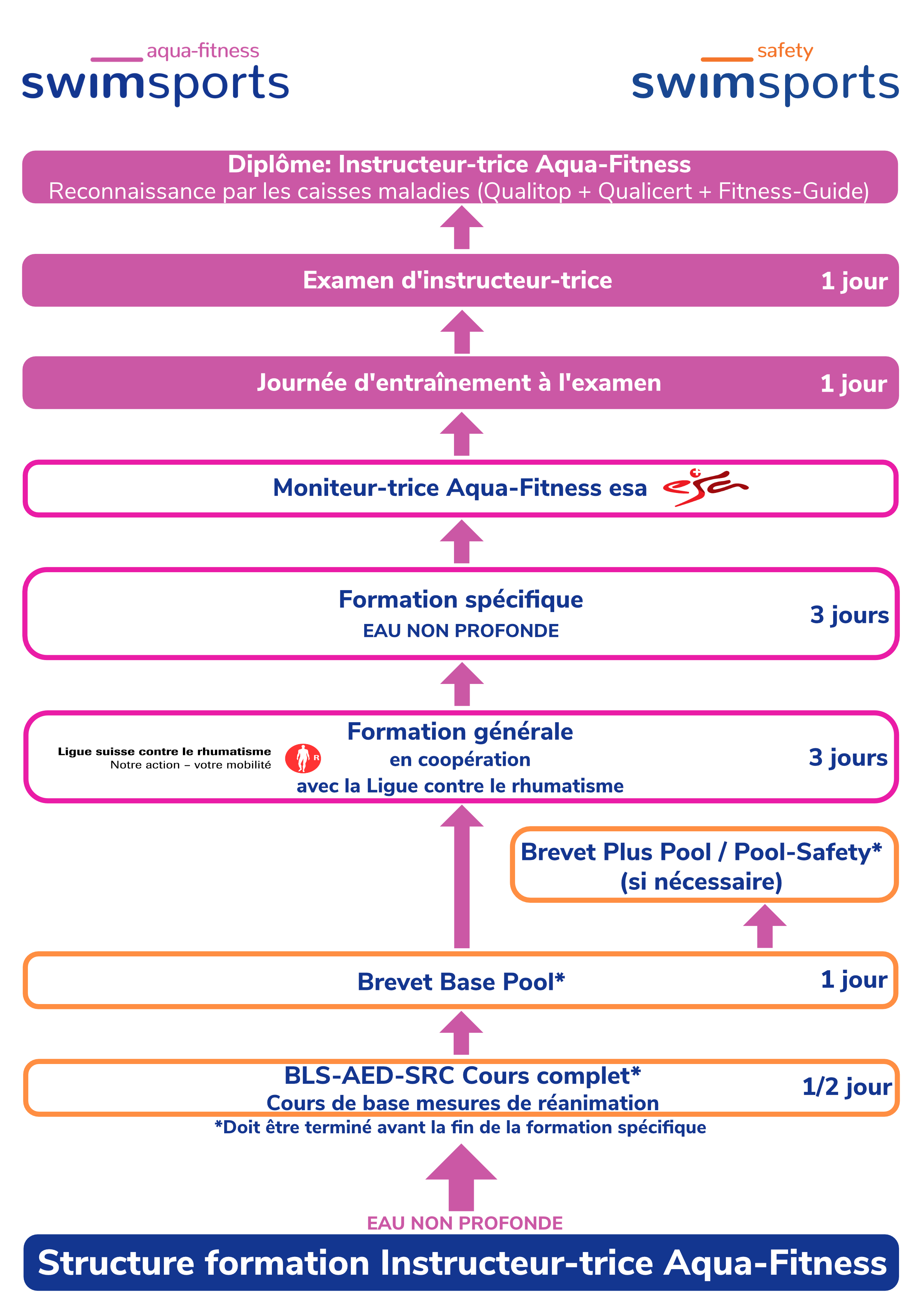 L’Aqua-Fitness en Eau Profonde, souvent appelé aqua-fit, désigne l’entraînement sans contact avec le sol et à l’aide d’une aide à la flottabilité (généralement un gilet, un Pant ou une ceinture). L’entrainement est extrêmement doux pour les articulations et grâce à la flottabilité, le poids du corps n’a aucun impact. L’apesanteur permet des mouvements dans toutes les positions. L’instabilité exige un bon contrôle du corps et une bonne stabilité du tronc pour pouvoir utiliser efficacement les mouvements de force réalisés avec les extrémités. En principe, il n’est pas nécéssaire de savoir nager. Les étapes de base des mouvements des jambes correspondent à celles de la course en eau profonde.
