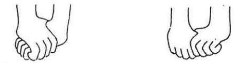 Palmo di una mano sul dorso dell'altra pugni (pollice di una mano impugnato dall'altra mano)