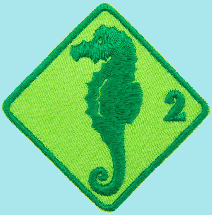 Während mind. 3 Sekunden Schweben mit angezogenen Beinen und Armen (Fässli) und sichtbarer, vollständiger Ausatmung ins Wasser, was zu einem möglichen Absinken führen kann.